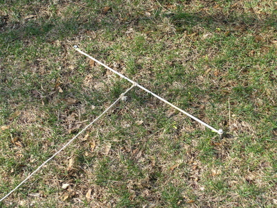 The top of the “T” is made of elastic attached to ground spikes. The longer part is thick non-stretchy cord.